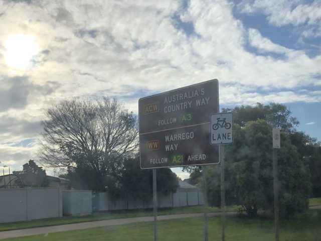 We also noted that we were driving along the New England Highway and that we were coming to the beginning of two tourist routes, Australia’s Country Way and the Warrego Way.
