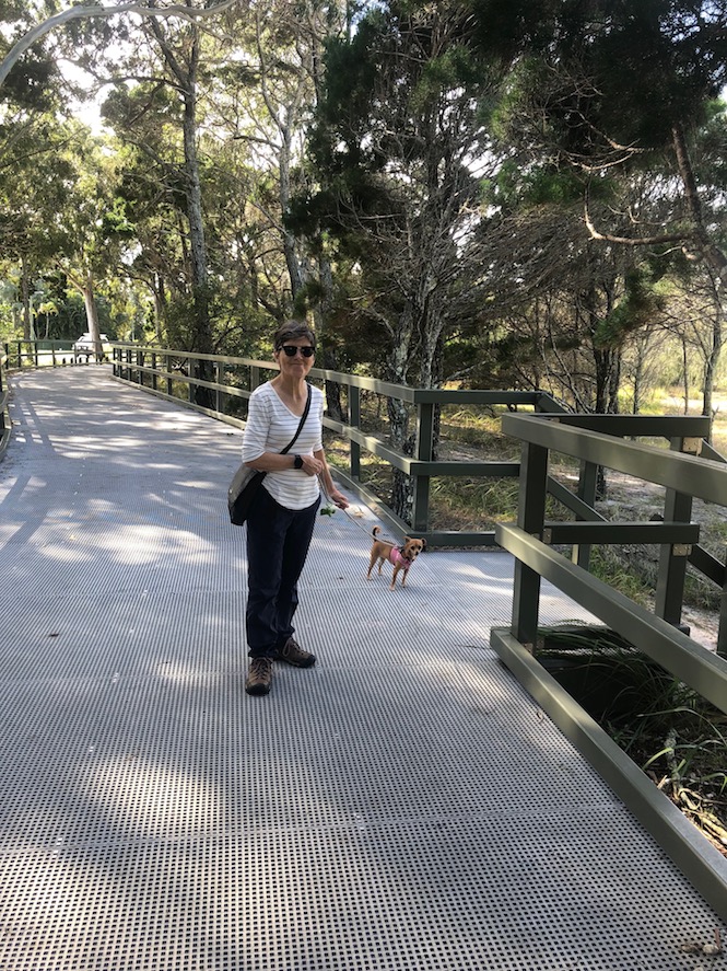 After looking at a map of the town we drove down to another area called Crab Creek. We thought we would do another walk there. Again there were lots of boats moored. It was a serene view. However the sign warning us of crocodiles had us curtailing our walk quickly. Mel is a great little guard dog but would have been no match for a croc!