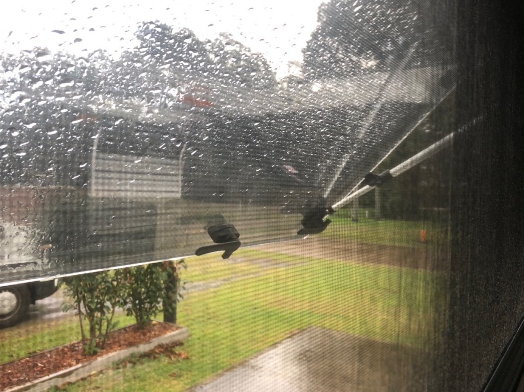 However, back at the caravan, whilst eating our sandwich lunch made with the yummy fresh bread we had purchased in Tin Can Bay, the rain came down again and it kept raining for a couple of hours.