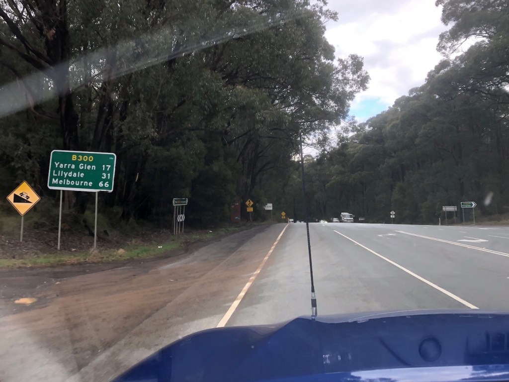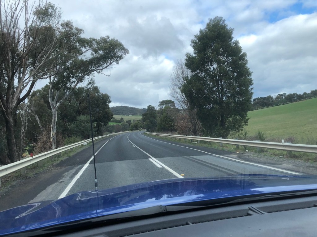 After swapping driver we headed south on the Goulburn Valley Highway. Lots of other cars and trucks passed us as we drove along.