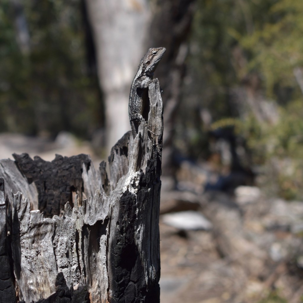 On one of the flatter parts of the trail we noticed a dead tree at the edge of the path. It was sitting in a very sunny spot and so was this lizard.