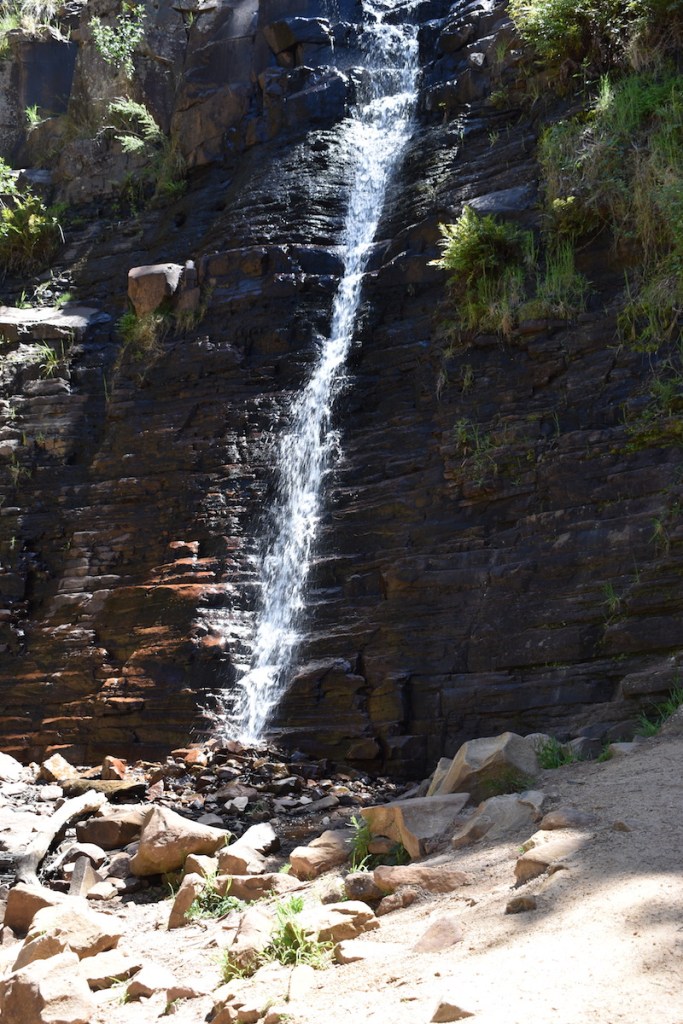 After finishing the walk up to the Pinnacle we drove around to the Silverband Falls carpark. It was only a short 700 metres walk through a partly shady, partly sunny forested area to the base of Silverband Falls.