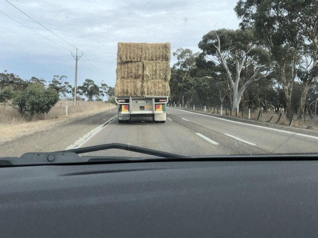 We continued our drive. About half an hour further along we ended up behind a truck heavily laden with hay bales.