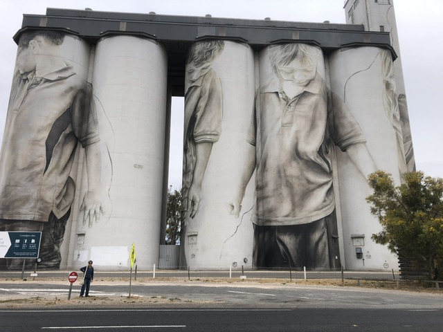 The silo art was a complete contrast to the silo art back in Kaniva. This artwork made clever use of the original material that the silo is constructed with.