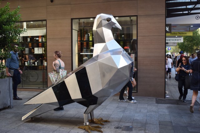 Alighting from the tram at Rundle Mall we walked along. A couple of sculptures caught our eye. First up , a giant pigeon.