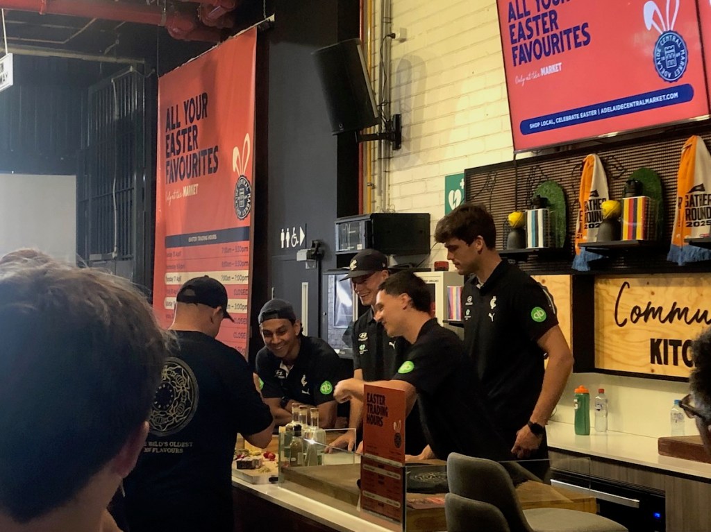 Clearly many visitors like us had joined the locals. Quite a few were gathered around a cooking demonstration being conducted with some Carlton football players who were in Adelaide for the Gather Round games.