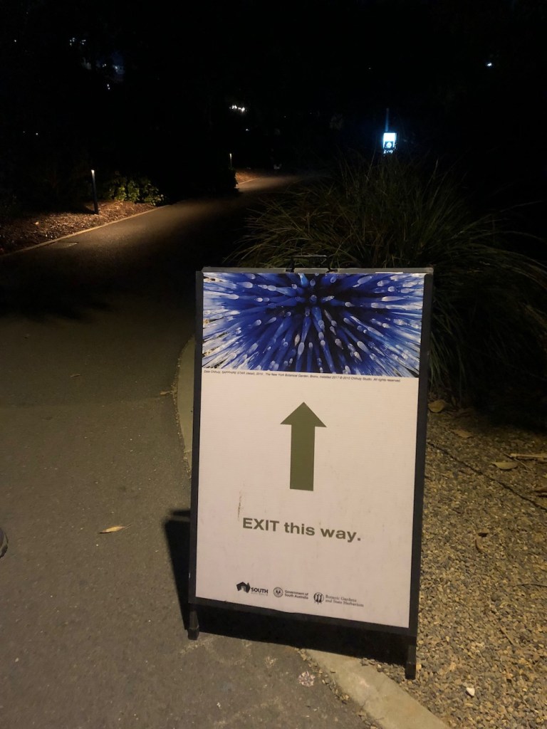 Apart from coming to Adelaide for the football, during the AFL Gather Round, a night visit to the stunning glass sculptures at the Chihuly Nights Exhibition at the Adelaide Botanic Gardens was high on our list of things to see. When you see these beautiful and colourful glass sculptures by celebrated American artist Dale Chihuly you can’t help but be amazed at his creativity. How his sculptures were transported to Australia and placed in position without suffering any breakages leaves you in disbelief.