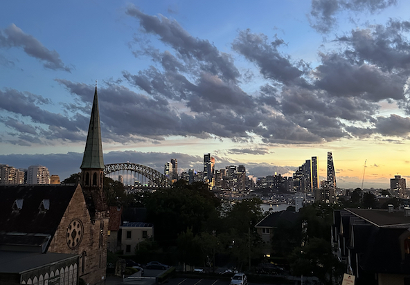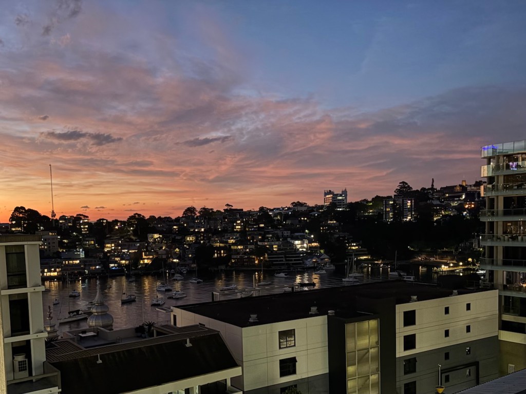 Awoke to another blue sky and a nice view from our apartment’s balcony over Lavender Bay.