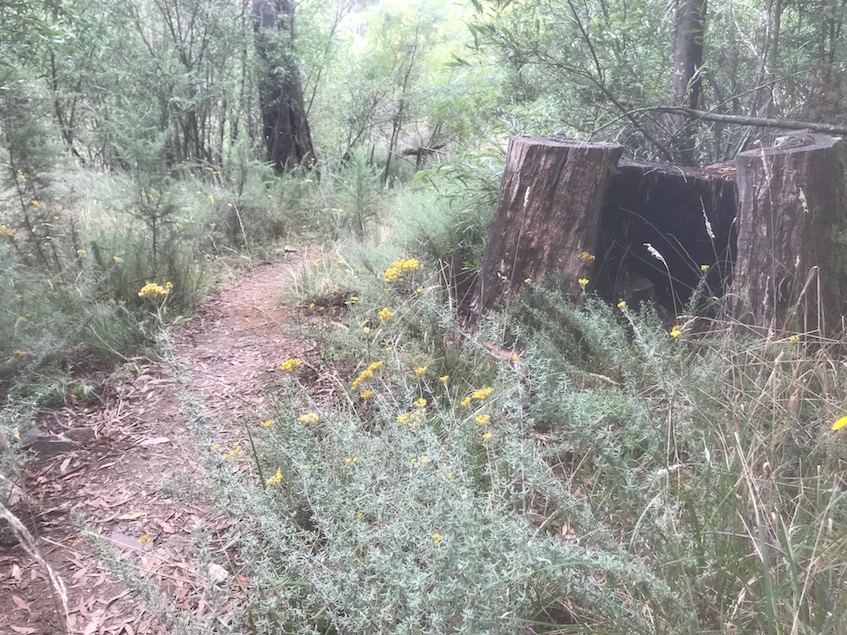Mackenzie Falls is only 7 kms to the lovely Reeds Lookout or just over 18 kms from Halls Gap township. We included it as a part of a scenic drive to Reeds Lookout. (See previous post.) After parking the car we followed the trail down to where the sealed descent began, passing some lovely wildflowers …